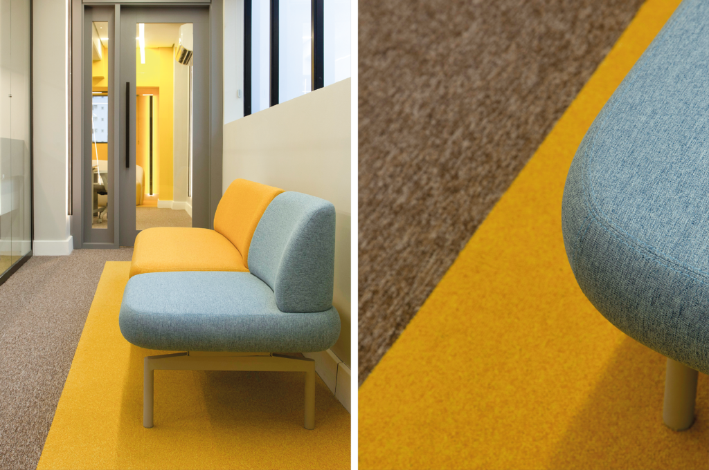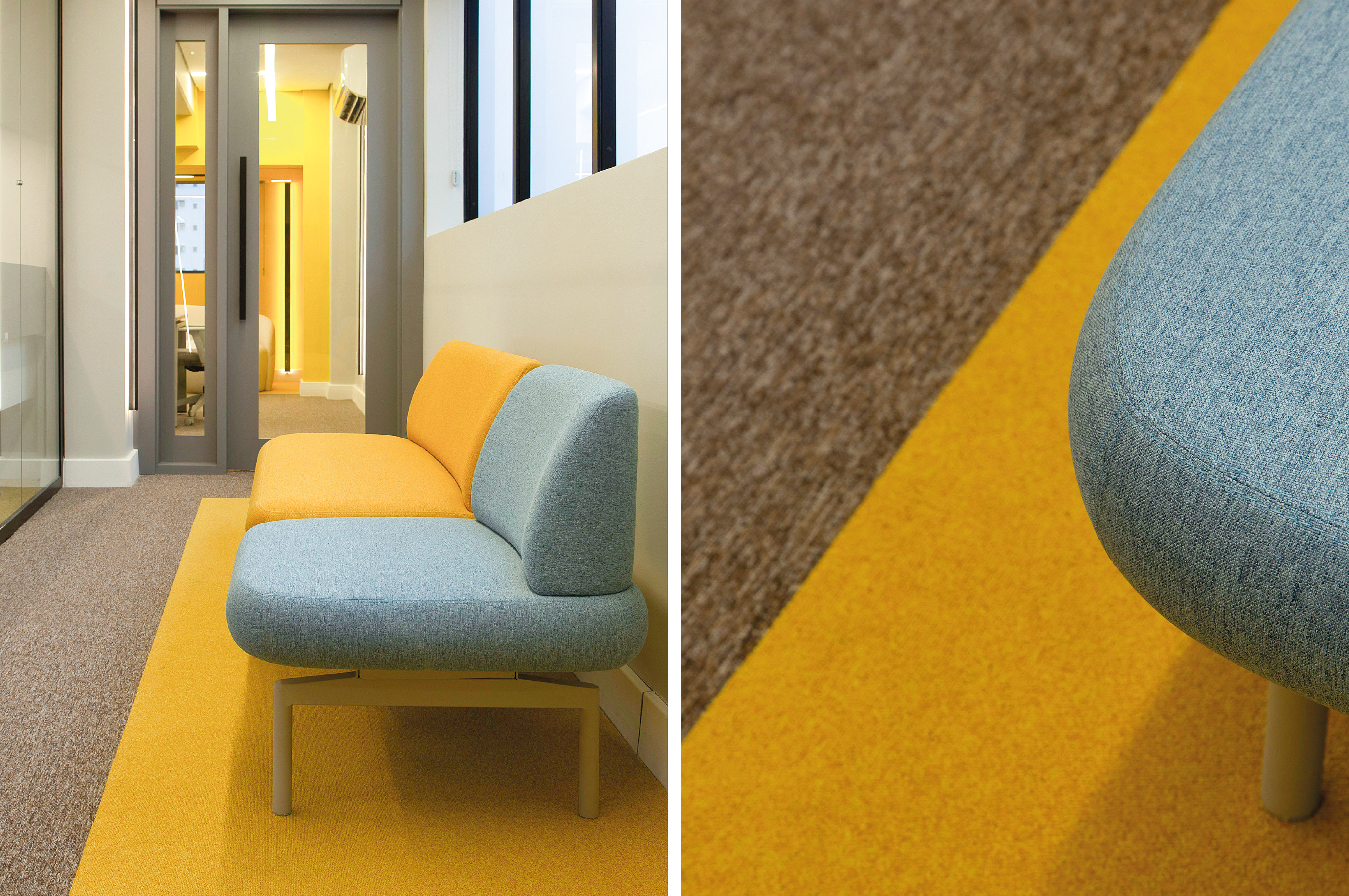 Materializar através de cores, texturas e acabamentos, o projeto inovador da arquiteta Renata Martins de Barros da nova sede da agência.