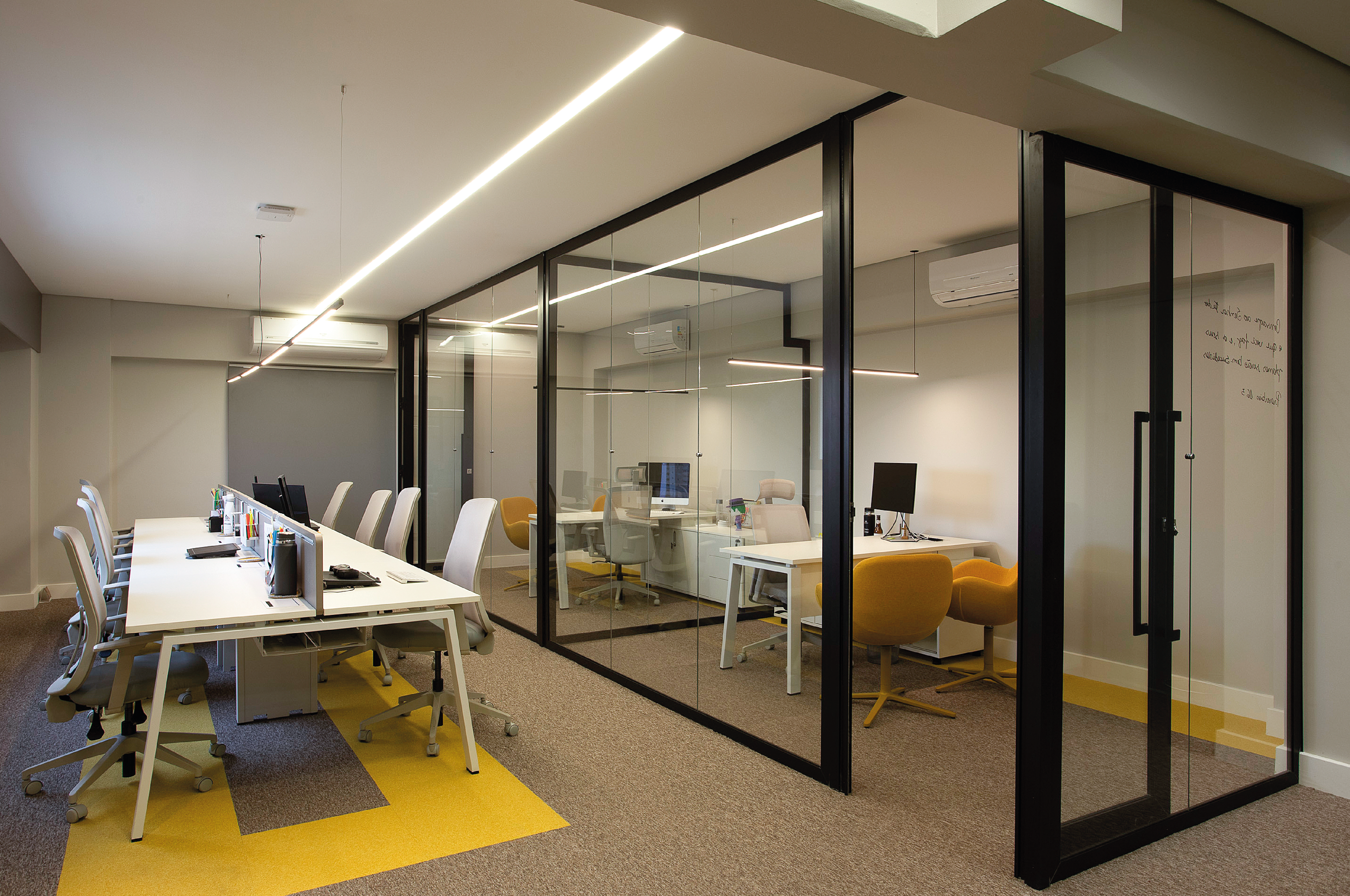 Construir um espaço dinâmico, multifuncional e inspirador para a equipe da agência continuar desenvolvendo seu trabalho. Soluções minimalistas, com cores sutis, mantendo a leveza e a harmonia em cada ambiente, trazendo à tona a identidade criativa e inovadora da marca.