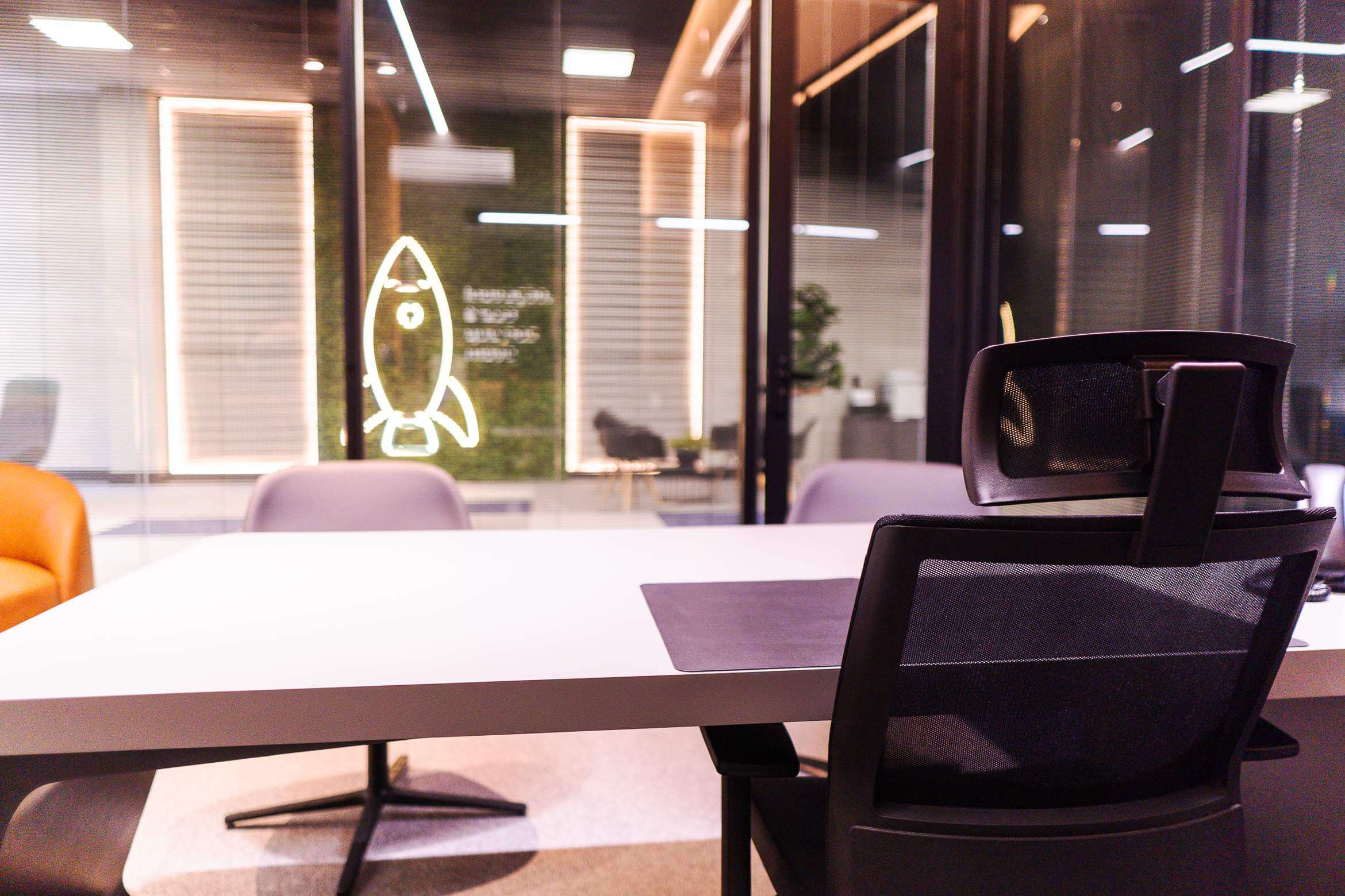 Projeto completo com mobiliário Bortolini; Assentos F.Way e Frisokar; Carpetes Interface; Divisórias DivDesign; Estofados Casa de Pedra e toda a expertise da Neomóbile para colocar em prática o projeto criado pela arquiteta Jomara Nicaretta.