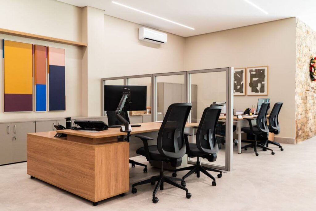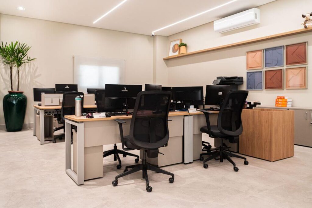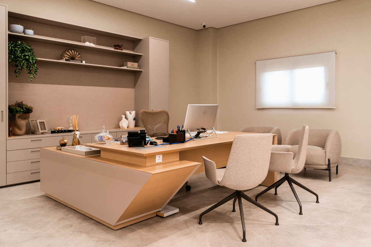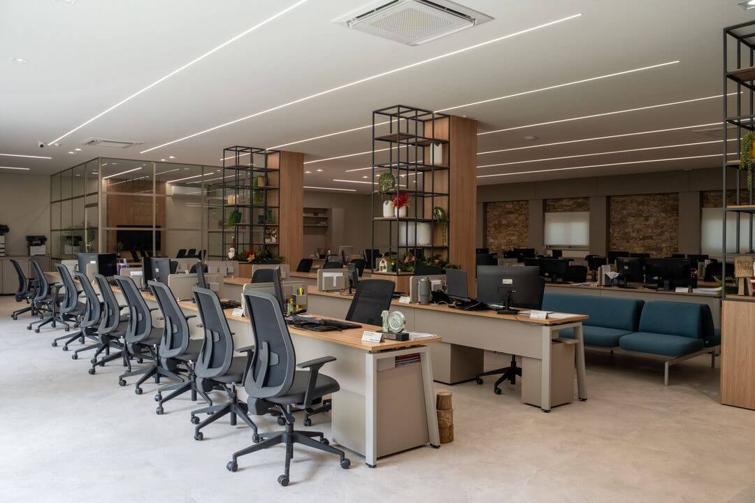 Com a curadoria da arquiteta Caroline Bocchi, o projeto resultou em um espaço contemporâneo, bem planejado e altamente eficiente, refletindo os valores da empresa, fortalecendo sua identidade e proporcionando uma experiência única para colaboradores e clientes.